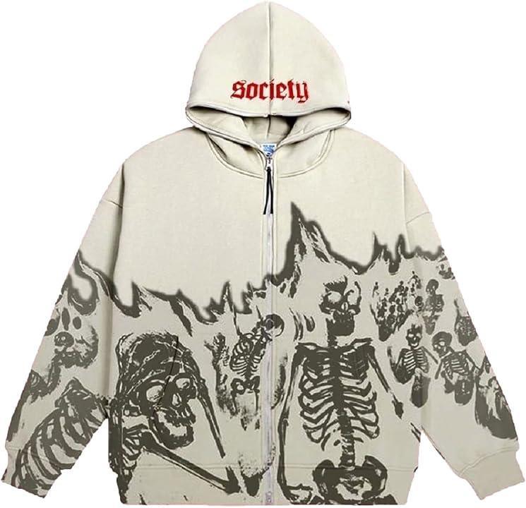 เสื้อฮู้ดผ้าฝ้ายโอเวอร์ไซส์สำหรับผู้ชาย, เสื้อแนวสตรีทแวร์เย็บปักแบบมีซิปโอเวอร์ไซส์