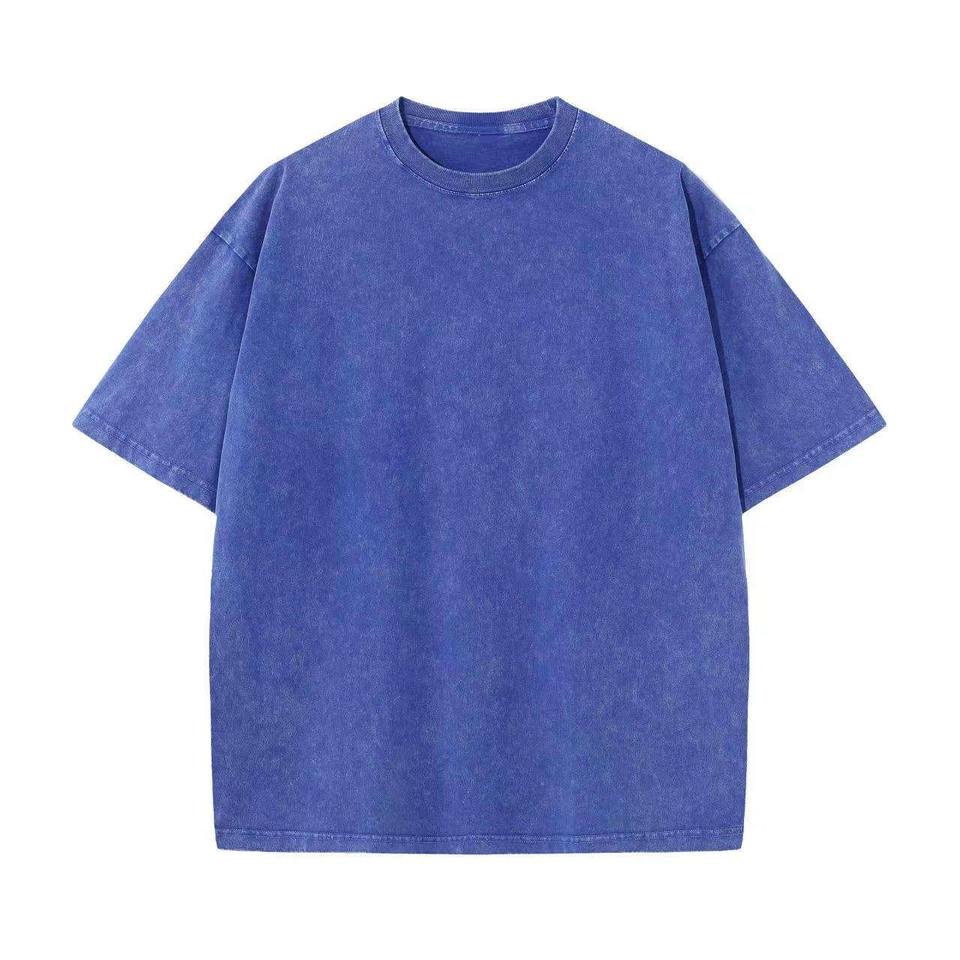 เสื้อยืดผ้าฝ้ายโอเวอร์ไซส์สไตล์วินเทจไหล่ตกน้ำหนักซักได้สีแห้งเร็ว