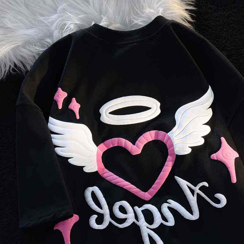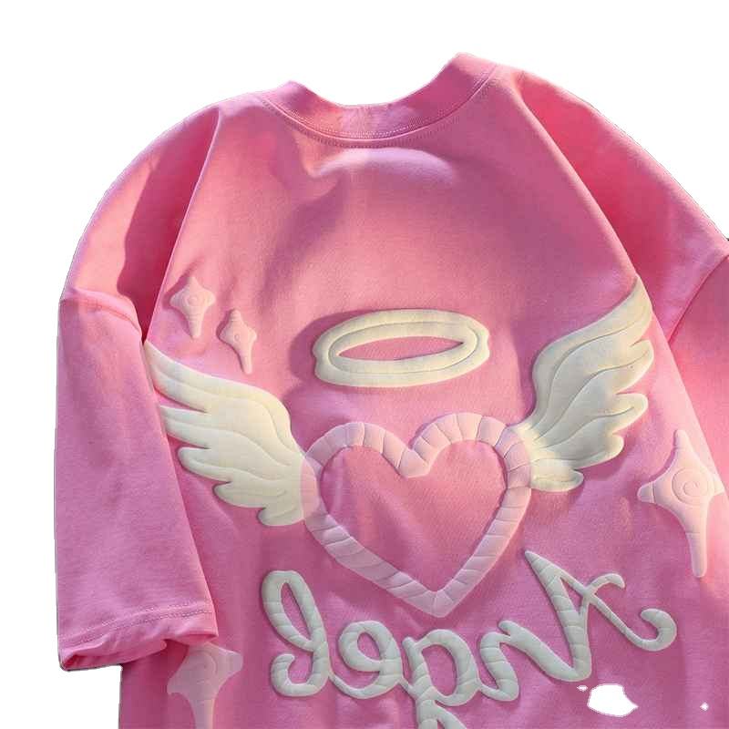 เสื้อยืดผู้ชายทรงหลวม พิมพ์ลายกราฟิก 3 มิติ แบบนูน ผ้าคอตตอนผสมโพลีเอสเตอร์คุณภาพสูง น้ำหนักมาก สไตล์สตรีทแวร์ รับสกรีนลายตามสั่ง