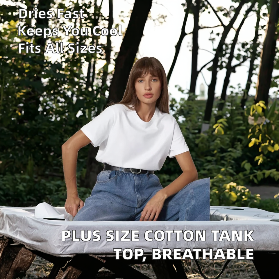 เสื้อกล้ามลำลองผู้หญิงไซส์พลัส ผ้าฝ้าย/สแปนเด็กซ์คุณภาพสูง ระบายอากาศได้ดี ไม่เป็นขุย ป้องกันรังสียูวี ตกแต่งด้วยคริสตัลพัฟ รับสกรีนโลโก้ ย้อมสีพื้น