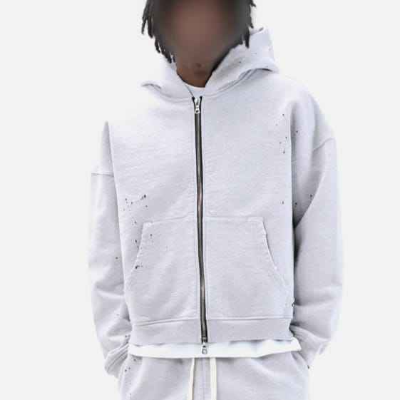 เสื้อฮู้ดมีซิปสไตล์สตรีทแวร์ผ้าคอตตอนคุณภาพสูงเสื้อครอปพาดไหล่แบบเลือกได้สไตล์สตรีทไม่หด