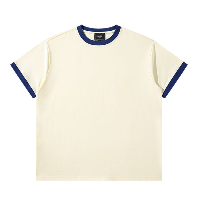 เสื้อยืดผ้าฝ้ายแขนสั้นสำหรับผู้ชายเสื้อยืดคอตตอนลายตะเข็บสีตัดกันเสื้อยืดผู้ชายโลโก้แบบออกแบบได้ตามต้องการ