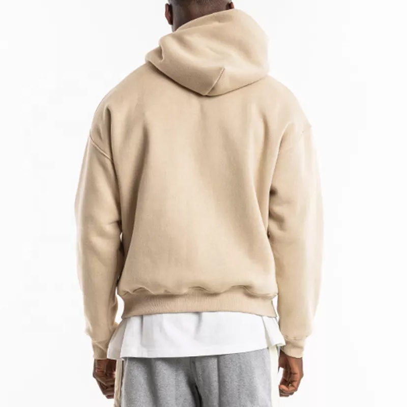 เสื้อฮู้ดผู้ชายโอเวอร์ไซส์ผ้าฝ้ายผ้าฟลีซหนาเปิดไหล่เรียบไม่มีลาย
