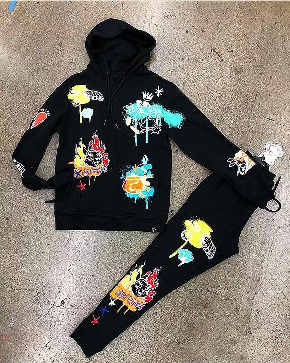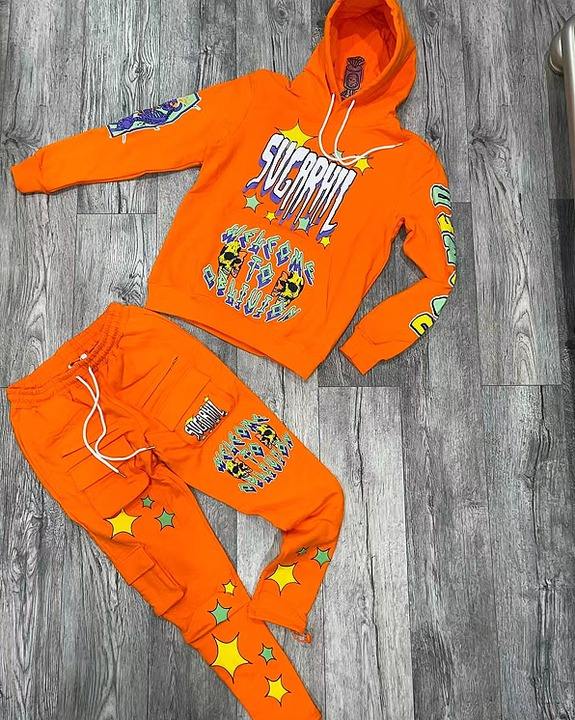 ชุดวอร์มผ้าฝ้ายพิมพ์ลายเฟรนซ์เทอร์รี่ชุดวอร์มและมีฮู้ดชุดสตรีทแวร์ซักกรดชุดออกกำลังกาย