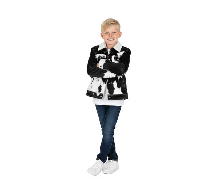 เสื้อแจ็คเก็ตหนังแท้คุณภาพสูง แต่งขนวัว คอตั้ง ปักโลโก้ด้านหน้า สำหรับผู้ชาย รุ่นใหม่ล่าสุด