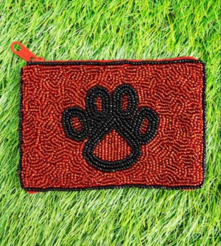 กระเป๋าลูกปัดคาวบอยที่ทำด้วยมือกระเป๋าสตางค์ขนาดเล็กแบบตะวันตกมีซิปที่ปิดสีส้มสีขาวเครื่องประดับแฟชั่น