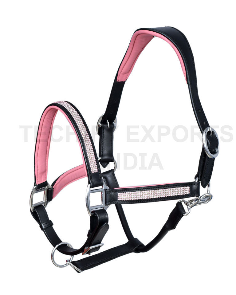 บังเหียนหนังวัวพร้อมสายรัดปรับระดับได้และแผ่นรองนุ่มเหมาะสำหรับการขี่ม้าและการแข่งขัน