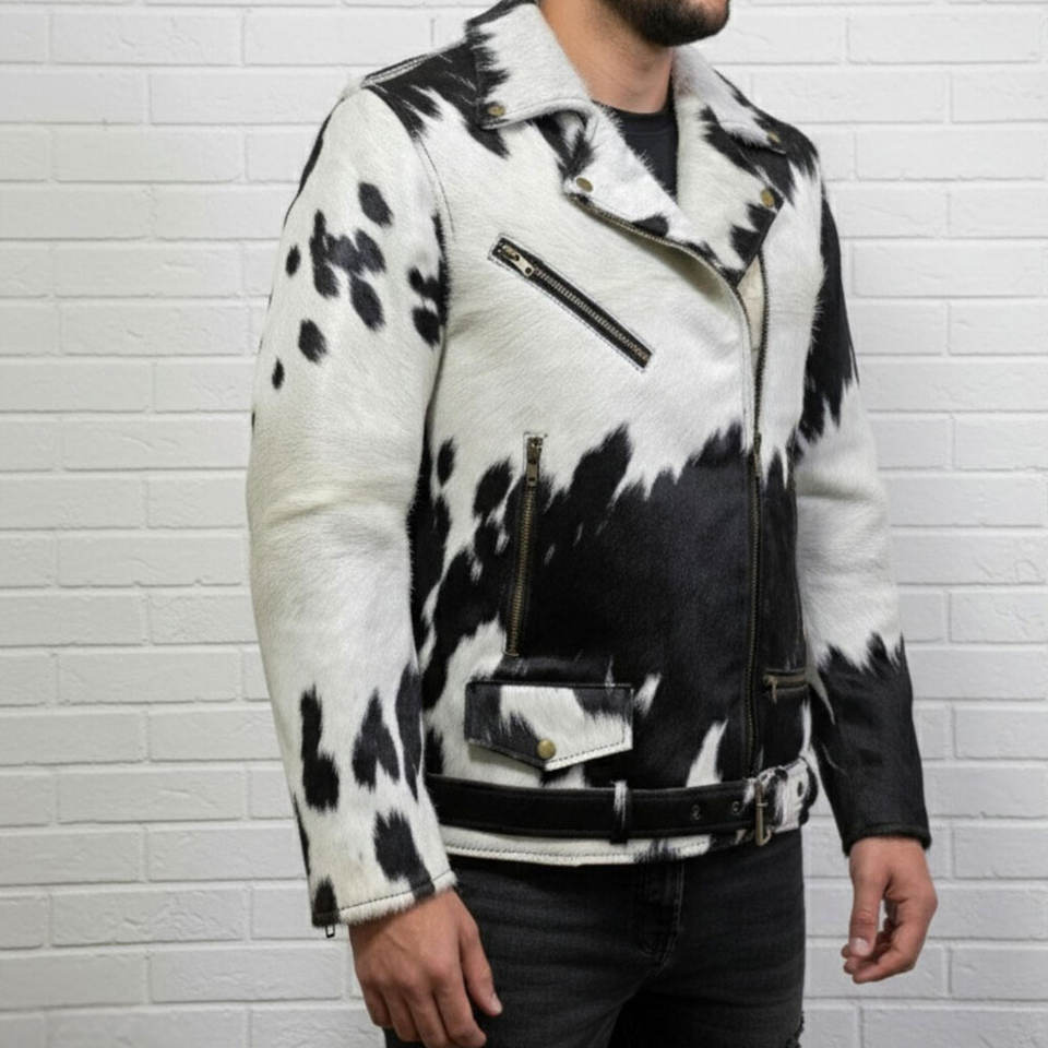 เสื้อแจ็คเก็ตหนังวัวแท้สำหรับผู้ชาย