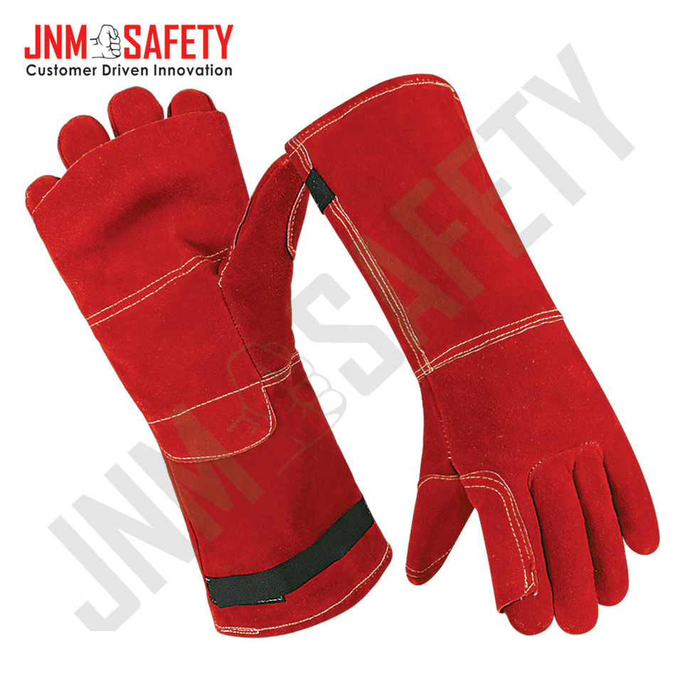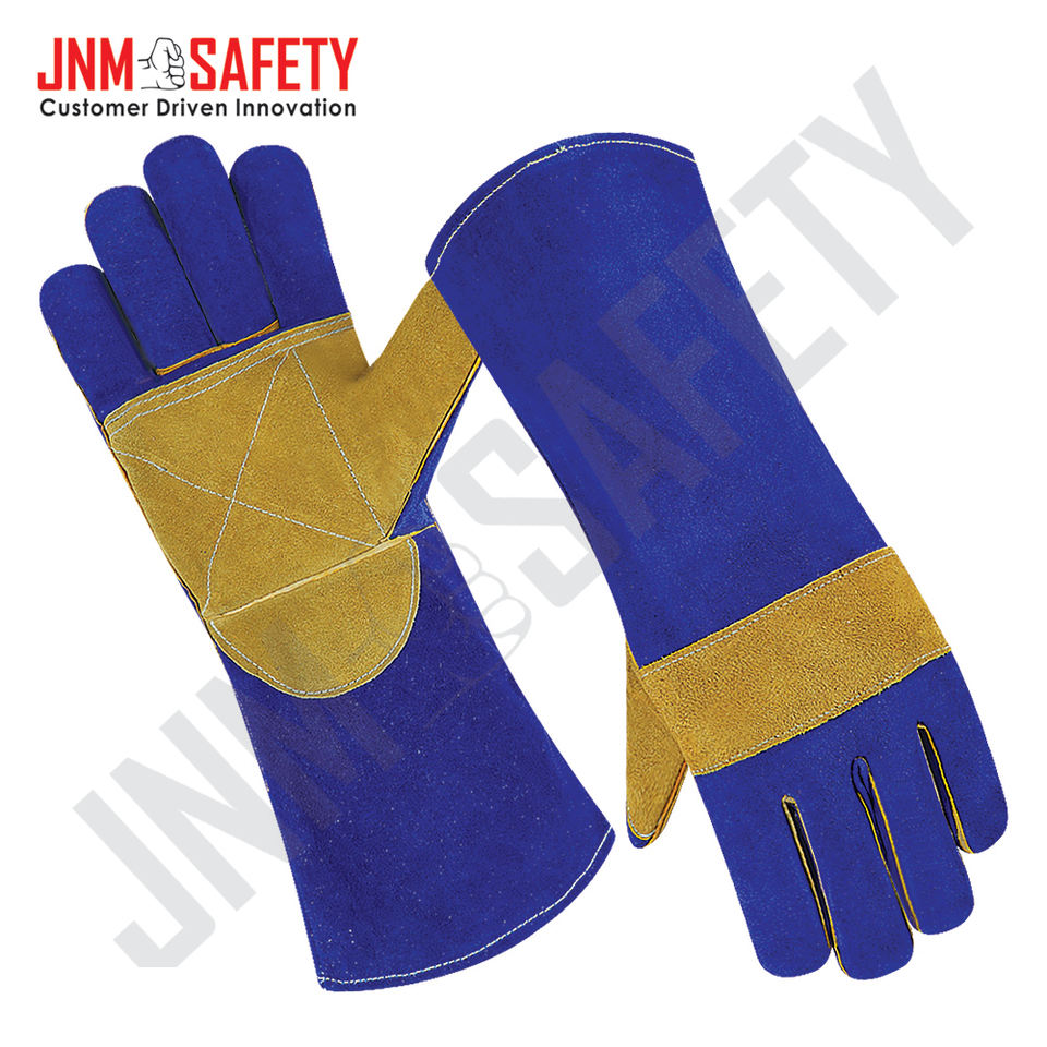 ถุงมือหนังวัวแท้คุณภาพสูง เสริมความแข็งแรงสำหรับงานอุตสาหกรรม ป้องกันการสั่นสะเทือน ทนต่อการเสียดสี และทนความร้อน