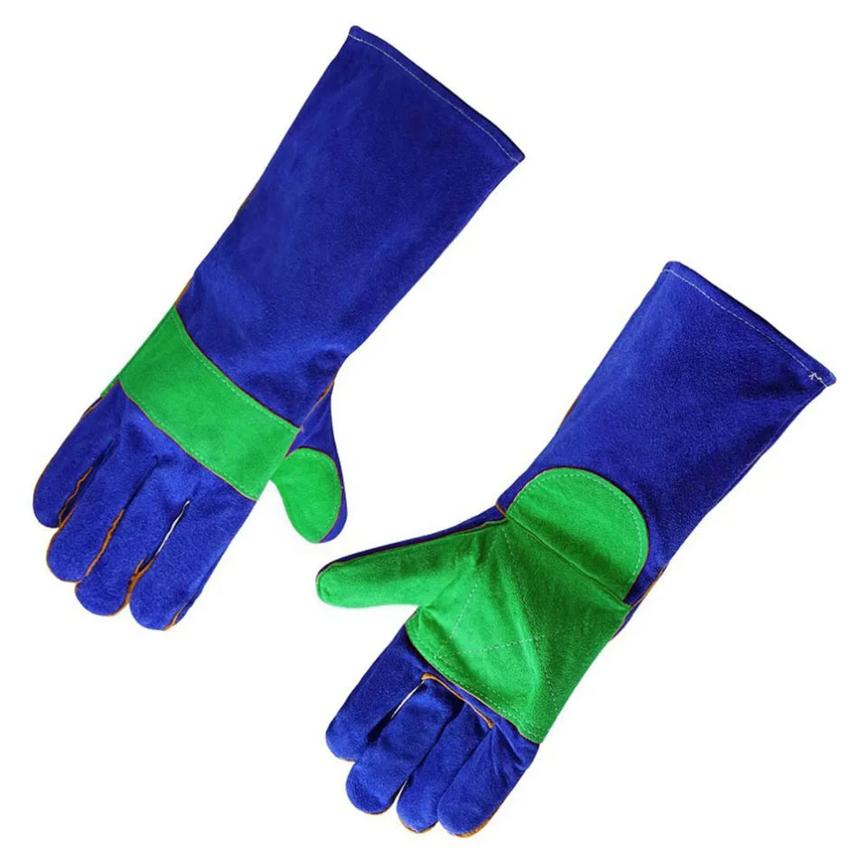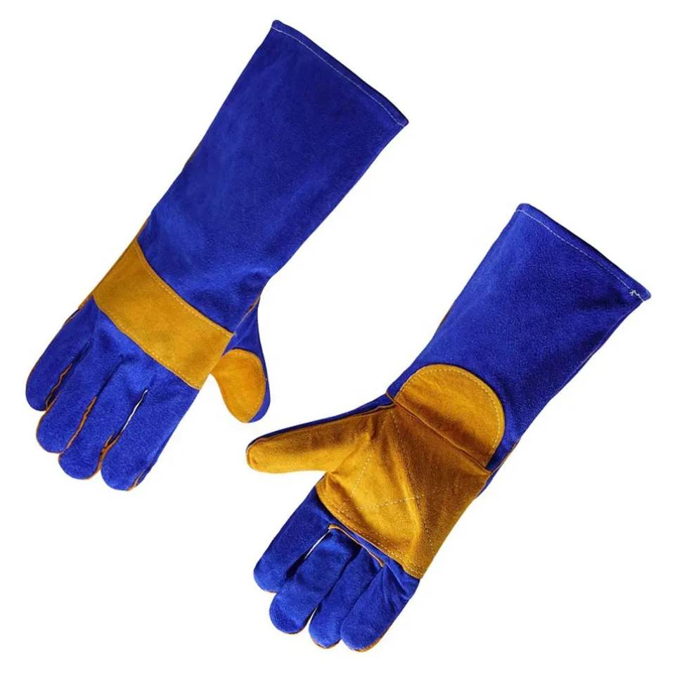 ถุงมือหนังวัวแยกชิ้นสำหรับงานเชื่อมเสริมความปลอดภัยในอุตสาหกรรมถุงมือป้องกันสำหรับช่างเชื่อม
