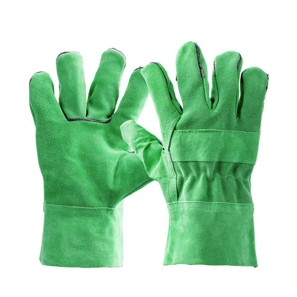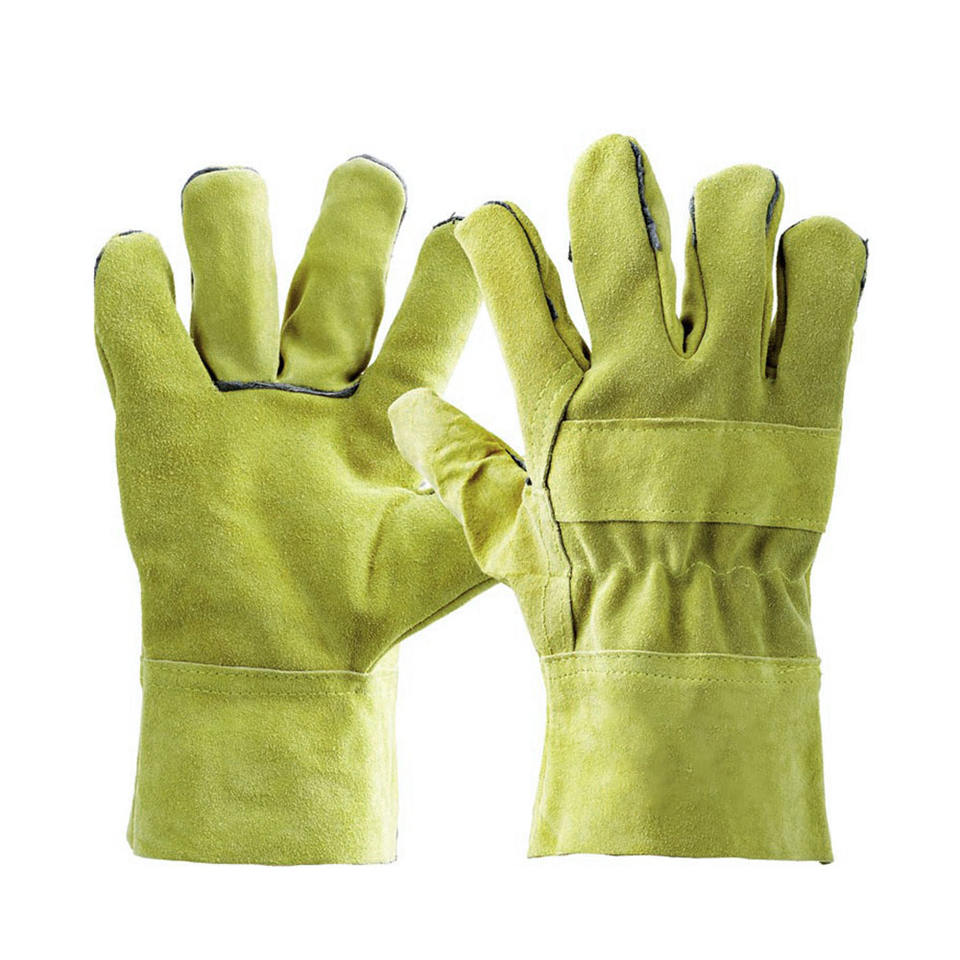 ถุงมือทำงานหนังวัวแยกชิ้นถุงมือนิรภัยสำหรับงานอุตสาหกรรมทำงานป้องกันรอยขีดข่วนทนความร้อน