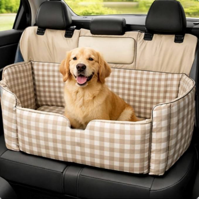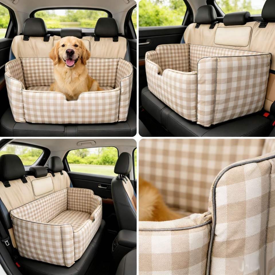 เบาะนั่งในรถสำหรับสุนัขคุณภาพสูง นุ่มสบาย หรูหรา พร้อมสายรัดนิรภัย ผ้าฝ้ายหนานุ่ม อุ่นสบาย ทันสมัย ถอดซักได้