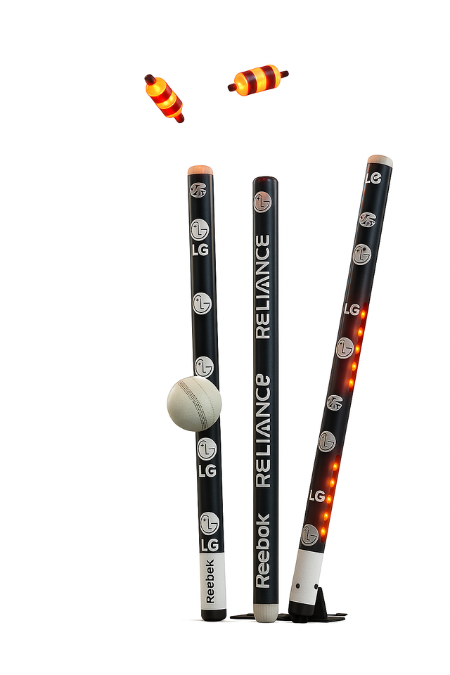 อุปกรณ์คริกเก็ตคุณภาพสูง ไฟ LED สำหรับเสาคริกเก็ต พร้อมเสา 3 อัน ไม้เบส 2 อัน ฐาน 1 อัน ปรับแต่งโลโก้ OEM ได้