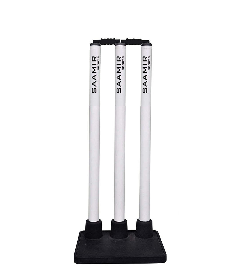 อุปกรณ์คริกเก็ตคุณภาพสูง - ฐานคริกเก็ตพลาสติกสีเหลือง พร้อมเสา 3 อัน ลูกบอล 2 อัน และฐาน 1 อัน รับทำโลโก้ OEM ตามสั่ง