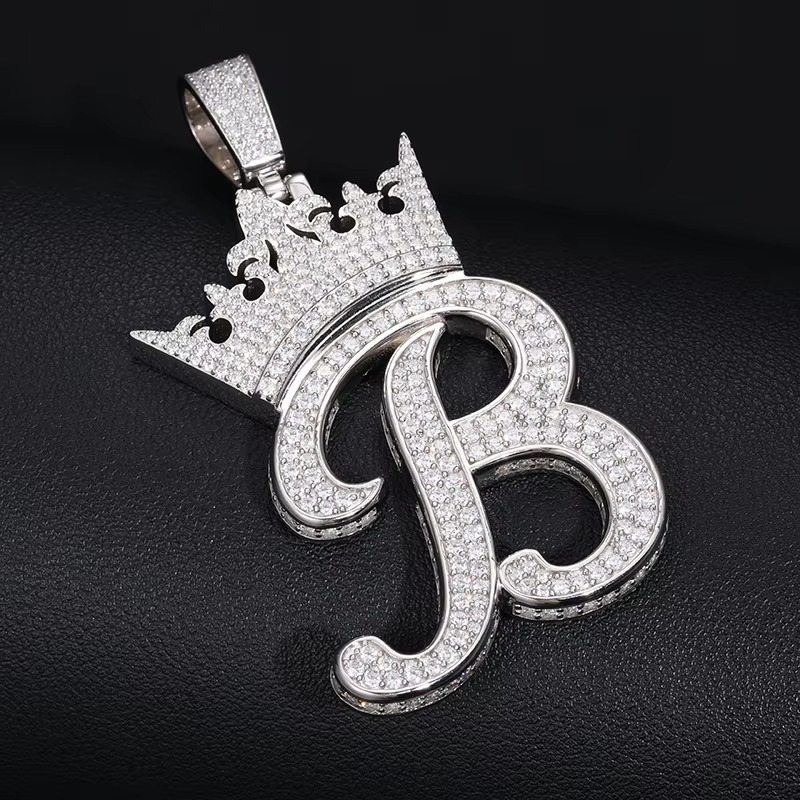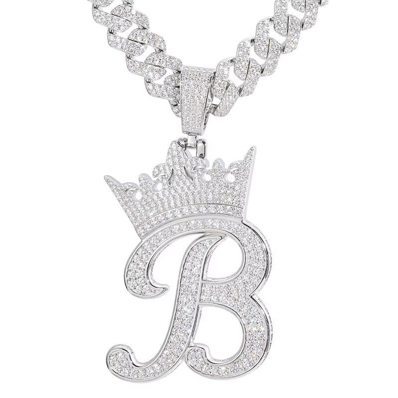 จี้ห้อยคอรูปมงกุฎคุณภาพสูง สลักชื่อตามสั่ง ตัวอักษรประดับเพชรโมอิสซาไนต์ เงินแท้ 925 สร้อยคอสำหรับผู้ชาย เครื่องประดับฮิปฮอป