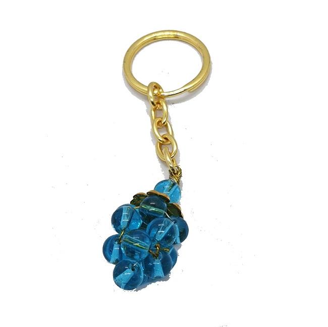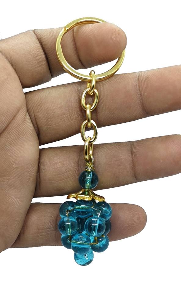 พวงกุญแจคริสตัลคุณภาพสูง หินอะความารีนรูปองุ่น หินธรรมชาติ ลูกปัดหินบำบัด พวงกุญแจของขวัญสำหรับผู้หญิง