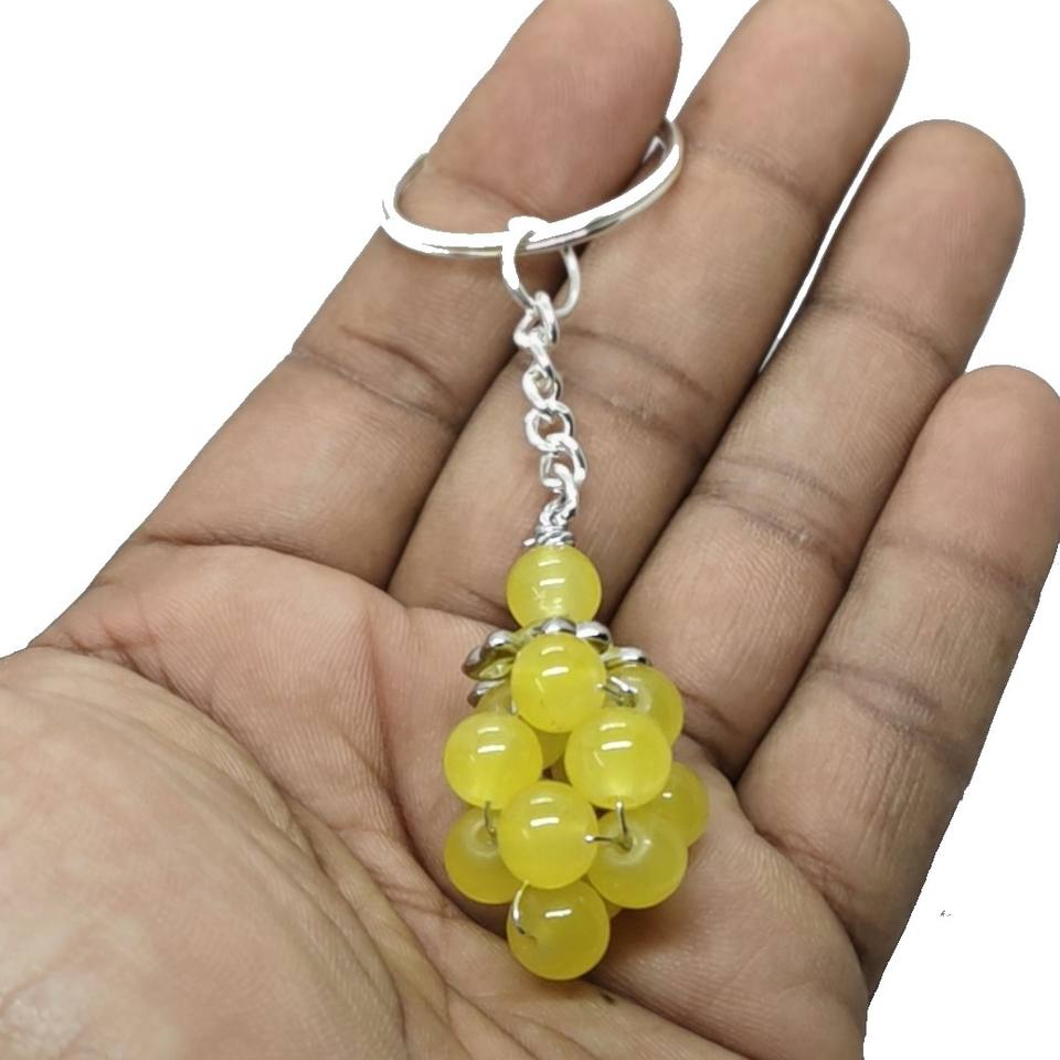 พวงกุญแจคริสตัลคุณภาพสูง หินอะเวนเจอรีนสีเหลืองรูปองุ่น ลูกปัดธรรมชาติจากจีน ของขวัญสำหรับผู้หญิง