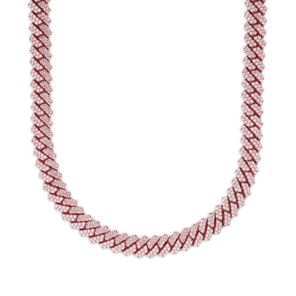 สร้อยสไตล์คิวบานประดับเพชรทรงกลมสีเงิน S925