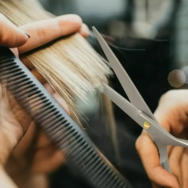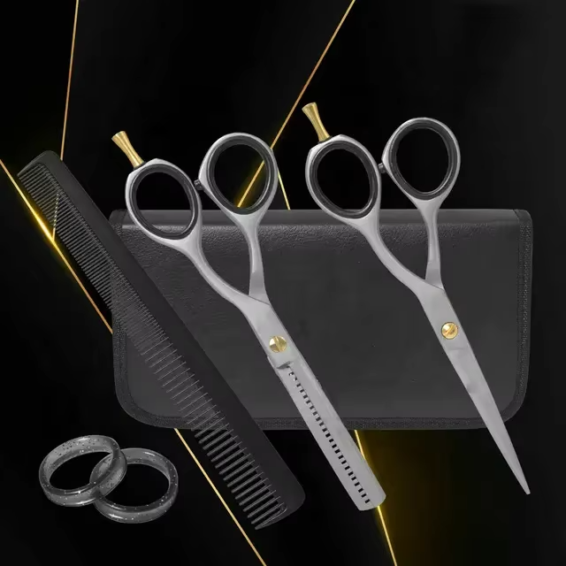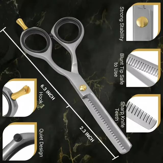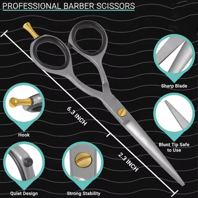 กรรไกรตัดผมคุณภาพสูง ใบมีดโค้ง สำหรับร้านเสริมสวยและร้านตัดผมมืออาชีพ ผลิตจากสแตนเลส รับผลิตแบบ OEM พร้อมสกรีนโลโก้
