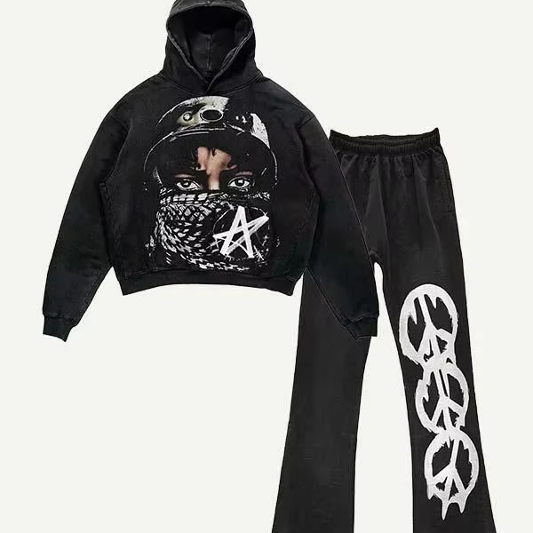 ชุดคลุมท้องฤดูหนาวคุณภาพสูงแบบสั่งทำพิเศษ ผ้าฟลีซเนื้อนุ่ม 440gsm 100% ผ้าฝ้าย ชุดกางเกงวอร์มขาบานหรูหราพร้อมเสื้อฮู้ดซิป แบบ DTG/DTF