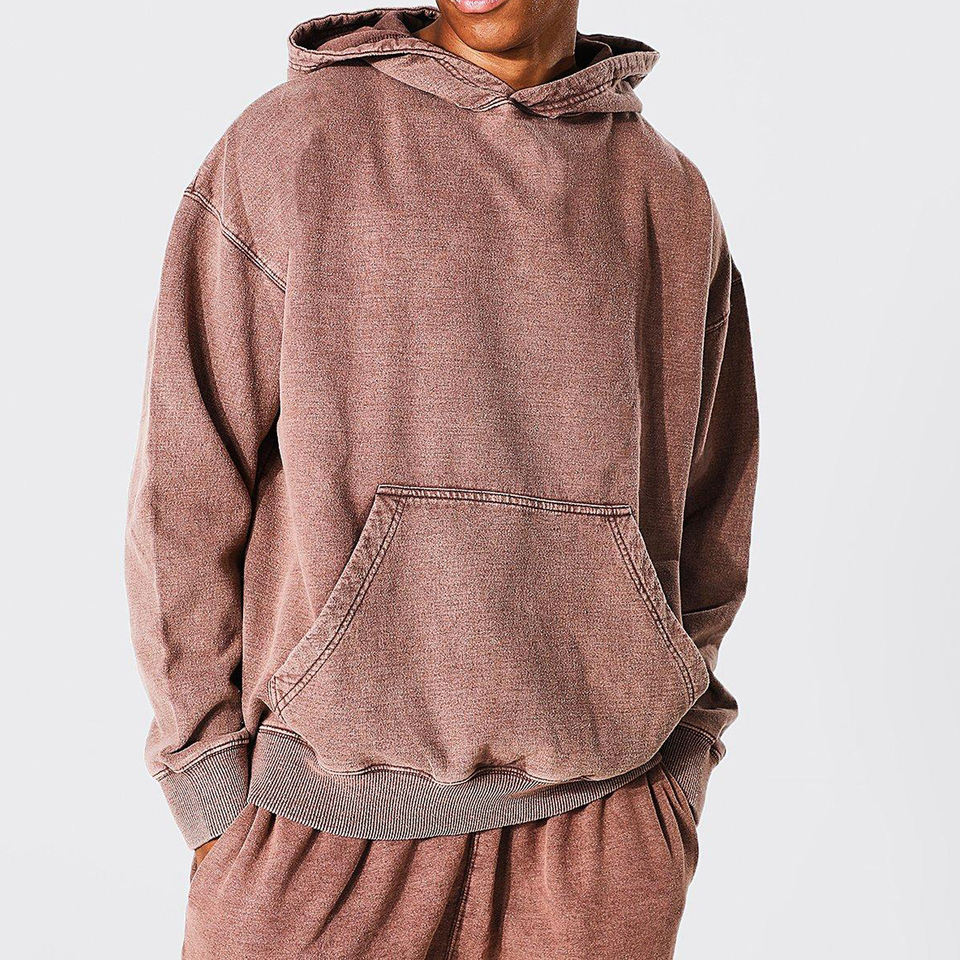 เสื้อฮู้ดซักกรดของผู้ชายเสื้อมีฮู้ดผ้าฝ้าย100% เฮฟวี่เวทซักไหล่แบบสั่งทำ
