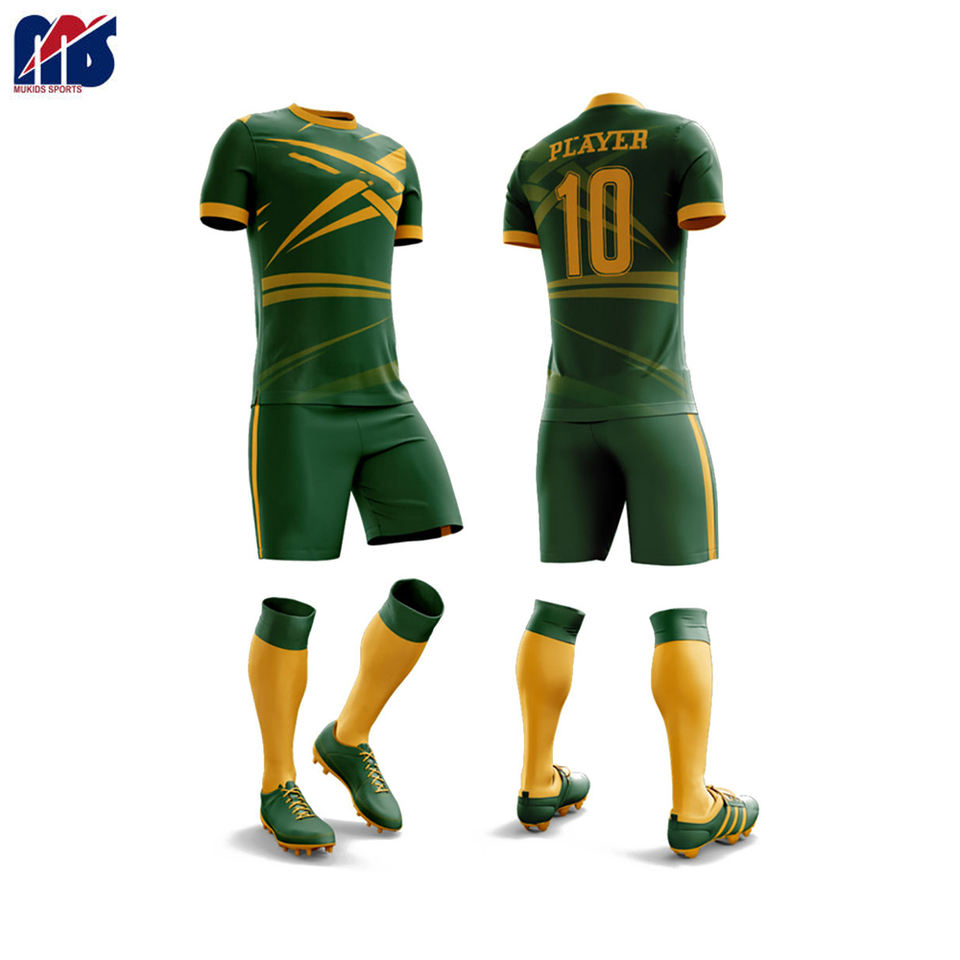 ชุดเสื้อฟุตบอลสำหรับผู้ใหญ่ชุดเสื้อเจอร์ซีย์แบบระเหิดกางเกงขาสั้นคุณภาพสูงตามสั่ง