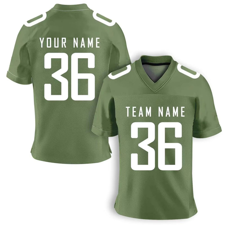 เสื้อฟุตบอลอเมริกันคุณภาพสูงแบบสั่งทำพิเศษ ดีไซน์แบบซับลิเมชั่น เนื้อผ้าระบายอากาศ แห้งเร็ว คอวี พร้อมปลายแขนเสื้อแบบริบ