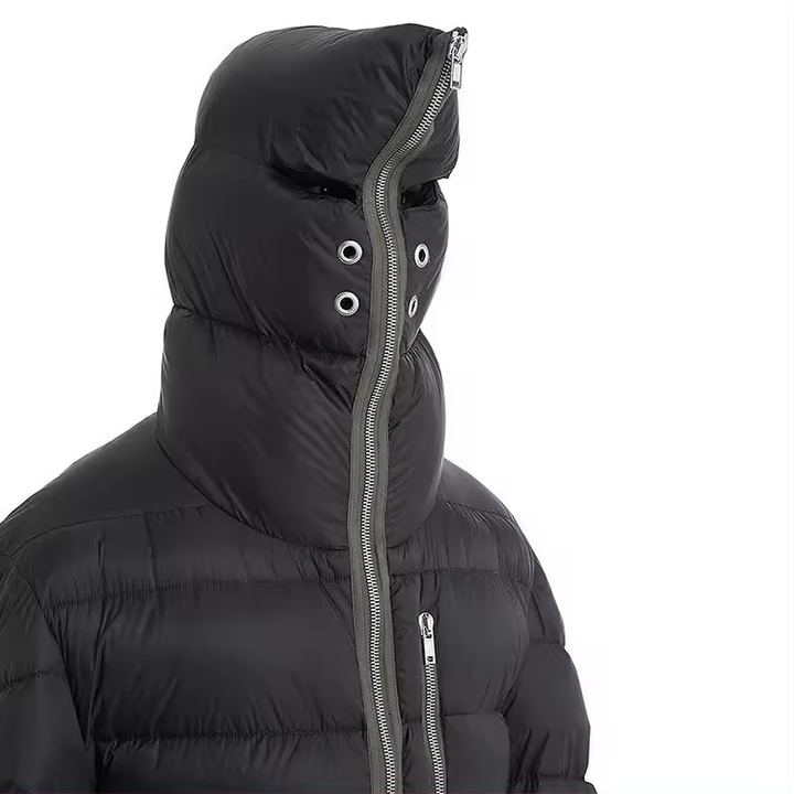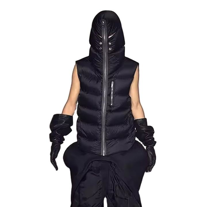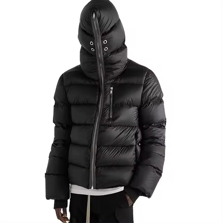 เสื้อแจ็คเก็ตพัฟเฟอร์คุณภาพสูงสำหรับผู้ชาย แบบมีฮู้ด คอตั้ง กันน้ำ สีดำ สำหรับฤดูใบไม้ร่วง สไตล์ลำลอง แฟชั่นแนวสตรีท พร้อมซิปยาวเต็มตัว