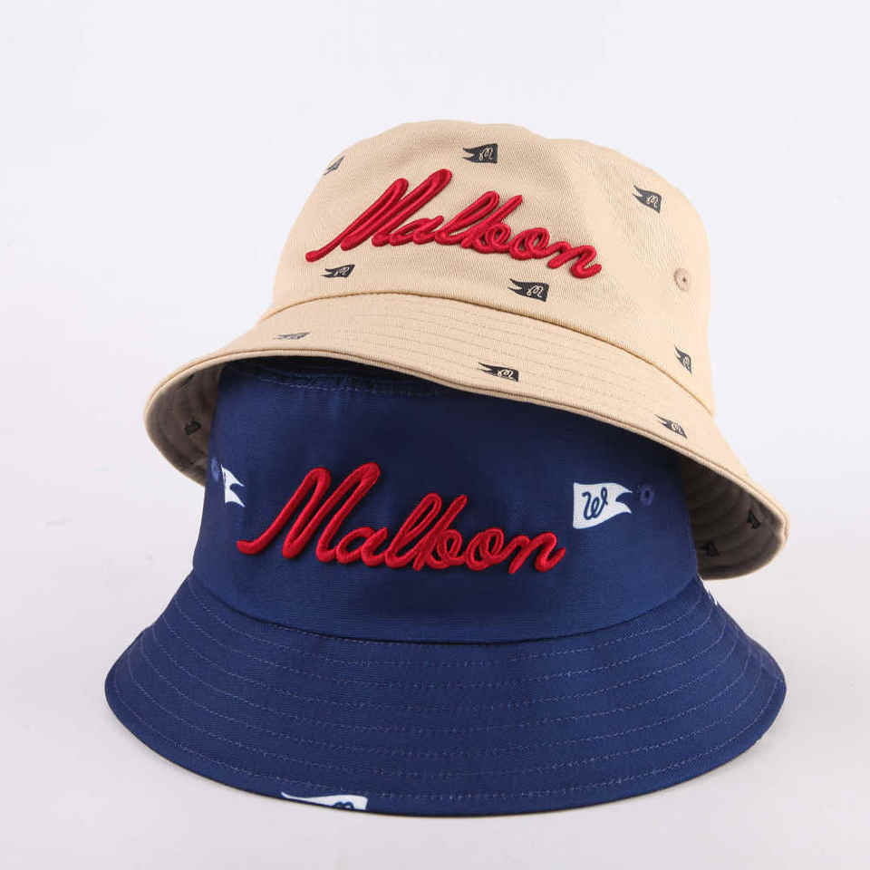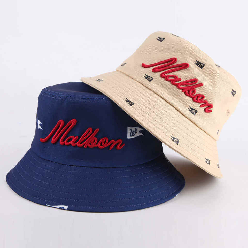 หมวกบัคเก็ตผ้าฝ้ายสีดำปักปีกกว้างสำหรับลำลองหรือกลางแจ้งทุกวันหมวกผู้ชายพร้อมโลโก้