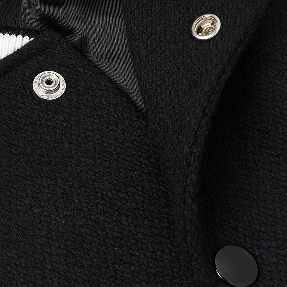 เสื้อแจ็คเก็ตผ้าฝ้ายปักลายสีดำคุณภาพสูงสำหรับผู้ชาย สไตล์วินเทจทรงโอเวอร์ไซส์ คอตั้งแบบนักศึกษา มีฮู้ด กันลมสำหรับฤดูหนาว