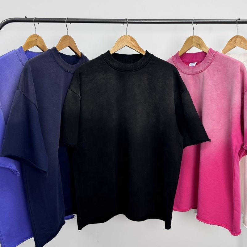 เสื้อยืดผู้ชายแนวสตรีทโอเวอร์ไซส์พิมพ์ลายพัฟสะพายไหล่แนววินเทจไม่เครียด350กรัมซักได้ตามต้องการ