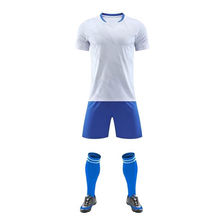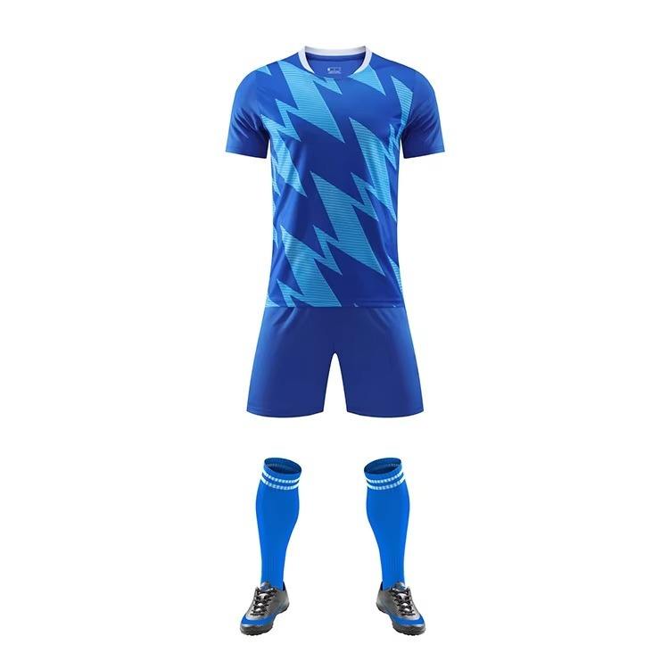 เสื้อเจอร์ซีย์สีฟ้าและสีเหลืองสำหรับเด็กเสื้อฟุตบอลออกแบบโลโก้แบบระเหิด