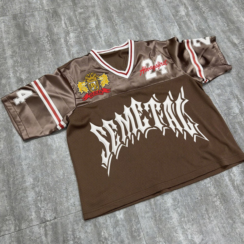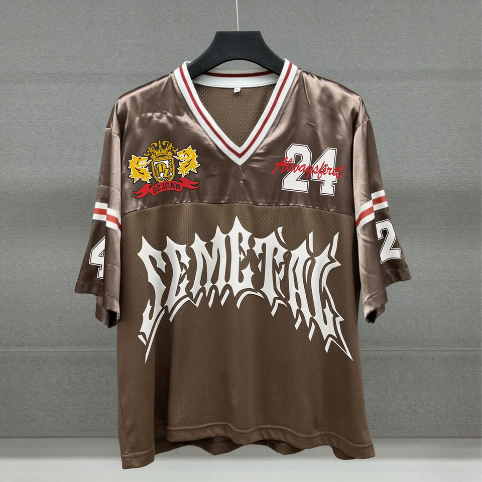 เสื้อยืดขนาดใหญ่พิมพ์ลายกราฟิกเสื้อยืดฟุตบอลดีไซน์สตรีทแวร์ออกแบบได้ตามต้องการ