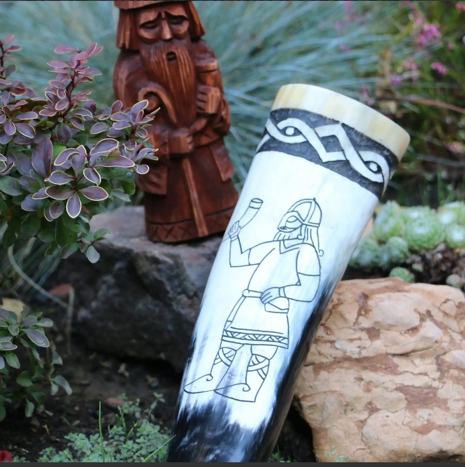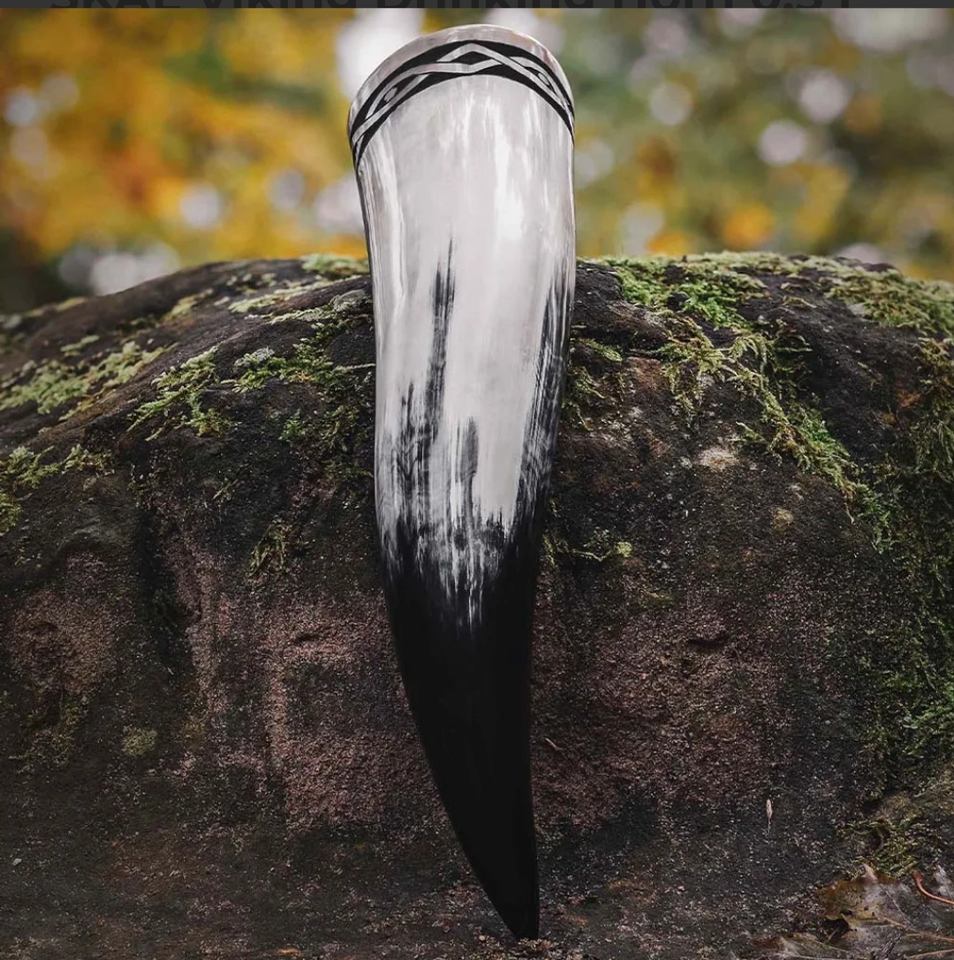 อุปกรณ์สำหรับดื่มแบบไวกิ้งทำมือเป็นมิตรต่อสิ่งแวดล้อมทำจากเขาสัตว์ทำจากควายธรรมชาติ