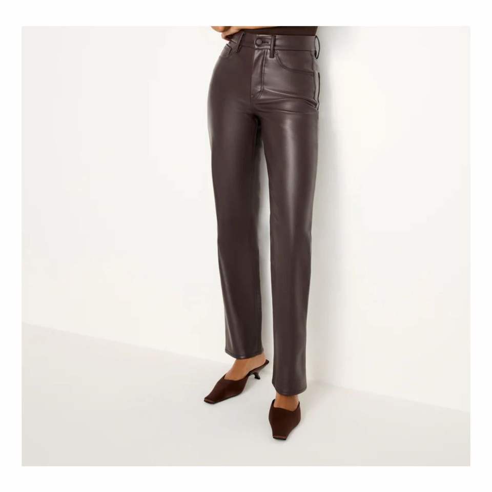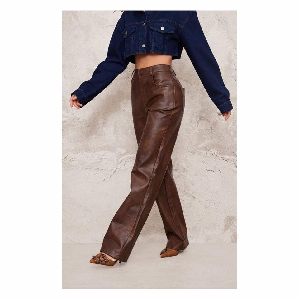 กางเกงหนังระบายอากาศได้ดีสำหรับผู้ชายกางเกงเอวสูงหนังสีฟ้า