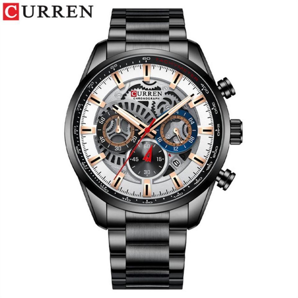 นาฬิกาควอตซ์ผู้ชายคุณภาพสูง แบบมัลติฟังก์ชั่น ตัวเรือนสแตนเลส กระจกเรืองแสง พร้อมฟังก์ชั่นโครโนกราฟ กันน้ำ แสดงวันที่