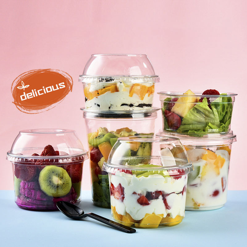 กล่องอาหารพลาสติกใสแบบใช้แล้วทิ้งคุณภาพสูง ทรงกลม มีฝาปิด สำหรับใส่อาหารกลับบ้าน ใส่สลัด ใช้ในงานปาร์ตี้ ขายส่ง ภาชนะบรรจุอาหาร