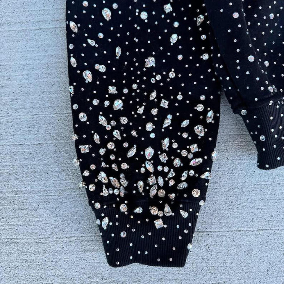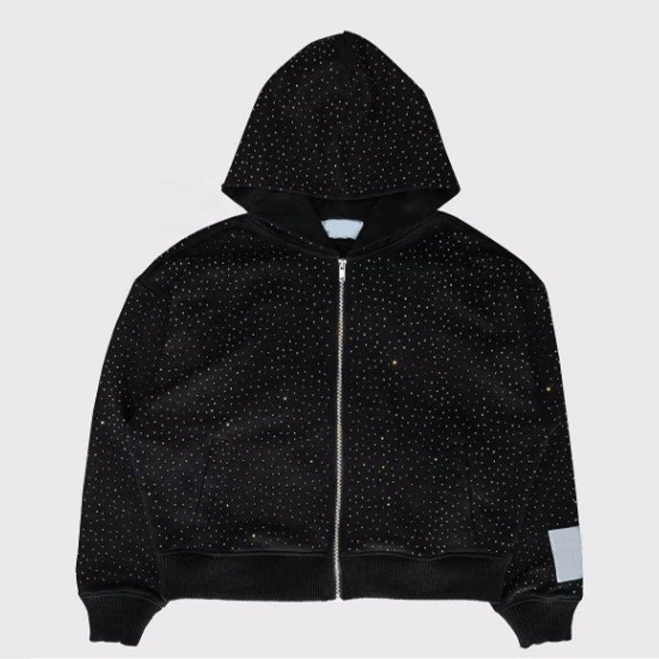เสื้อกันหนาวผ้าฝ้ายฟลีซคุณภาพสูงสีสันสดใสประดับเพชร น้ำหนักมาก ระบายอากาศได้ดี สวมใส่สบาย สำหรับผู้ชาย