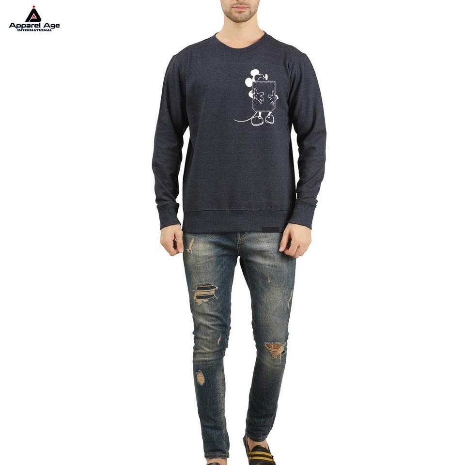 เสื้อสเวตเตอร์คอกลมสำหรับผู้ชายเสื้อสเวตเตอร์คอตตอนขนาดใหญ่พิเศษของผู้ชายปักลาย