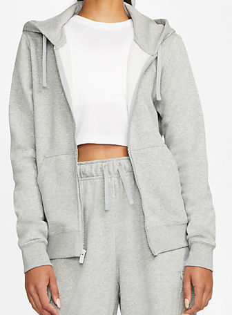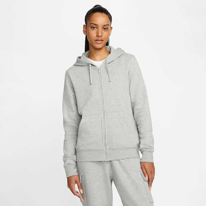 เสื้อฮู้ดดี้ผู้หญิงแขนยาวผ้าฟลีซคอตตอน/โพลีเอสเตอร์คุณภาพสูง สไตล์สตรีทแวร์สำหรับฤดูหนาว มีซิป กระเป๋า ย้อมสีพื้น ปักลาย