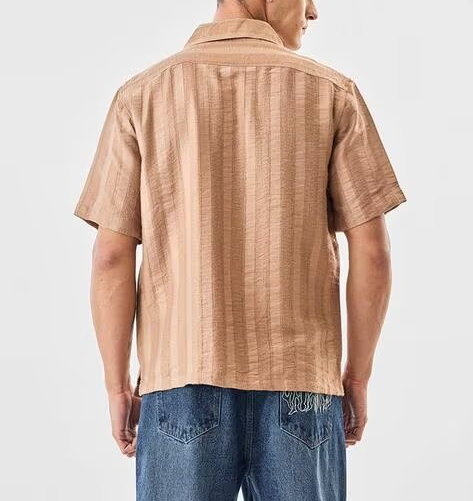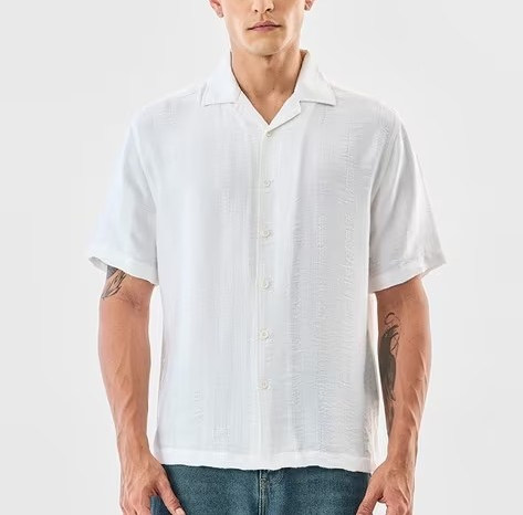 เสื้อเชิ้ตผู้ชายคอคิวบา ผ้าคอตตอนทวิลคุณภาพสูง ตัดเย็บตามสั่ง ปักลาย ทรงบ็อกซี่ ครอป ดีไซน์เนอร์