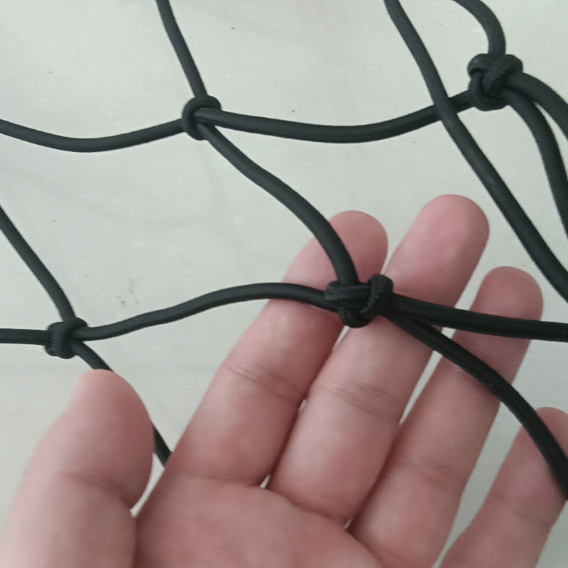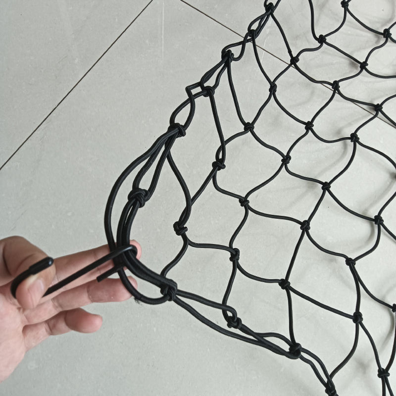 ตาข่ายพลาสติกยืดหยุ่นสีดำคุณภาพสูง ขนาด 10 ซม. ความหนา 5-6 มม. สำหรับใส่สัมภาระในรถบรรทุกหรือท้ายรถ พร้อมตะขอ ติดตั้งง่าย