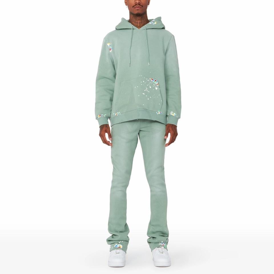 ชุดวอร์มผ้าคอตตอนเนื้อหนาสำหรับผู้ชายชุดวอร์มมีเปลวไฟพิมพ์ลายบนหน้าจอแบบสองชิ้น