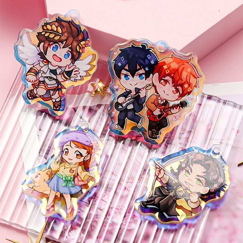 พวงกุญแจอะนิเมะแบบสั่งทำพวงกุญแจอะนิเมะแบบใสของขวัญอะคริลิกพิมพ์ลาย UV แบบโฮโลแกรมของขวัญราคาถูกพลาสติกสไตล์การ์ตูน