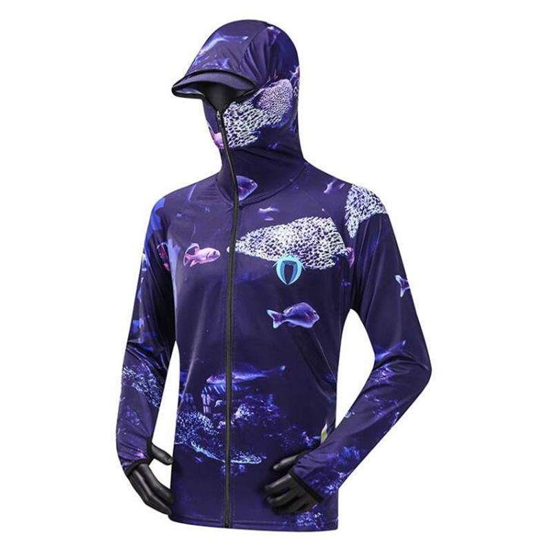 เสื้อคลุมกันแดดกันน้ำกันลมสำหรับตกปลา แขนยาว แห้งเร็ว พิมพ์ลายดิจิตอลคุณภาพสูง ผลิตตามสั่ง 100% โพลีเอสเตอร์ UPF 50 ปิดคลุมทั้งใบหน้า
