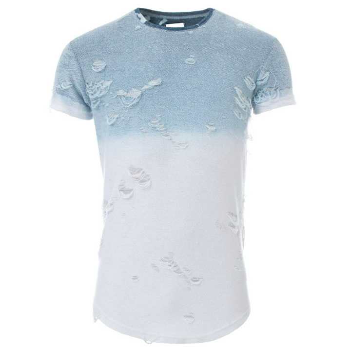 เสื้อยืดผู้ชายสไตล์ดิสเทรสคุณภาพสูง แขนสั้น ลำลอง ทรงโอเวอร์ไซส์ แฟชั่นใหม่ เสื้อยืดผู้ชายดิสเทรส
