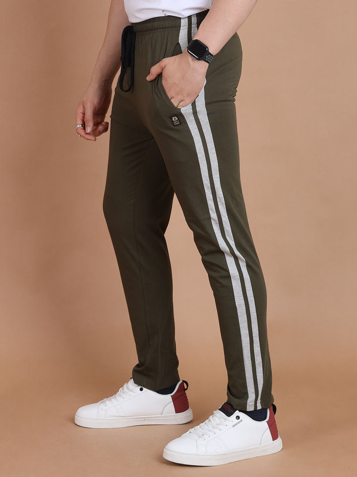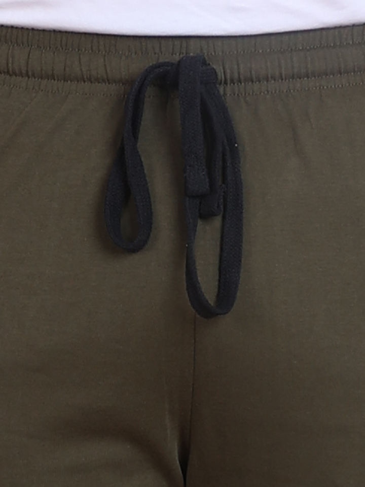 กางเกงวอร์มผ้าฝ้ายเอวยางยืดกางเกงลำลองสีเขียวมะกอก