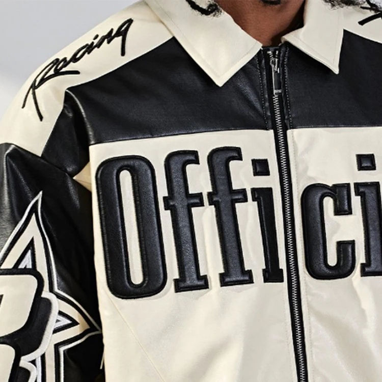 เสื้อแจ็คเก็ตเบสบอลฤดูหนาวปักโลโก้แบบกำหนดเองคุณภาพสูงสำหรับผู้ชายไซส์ใหญ่ แขนยาว แบบ Varsity Letterman ตกแต่งด้วยผ้าไหมแบบ Patchwork