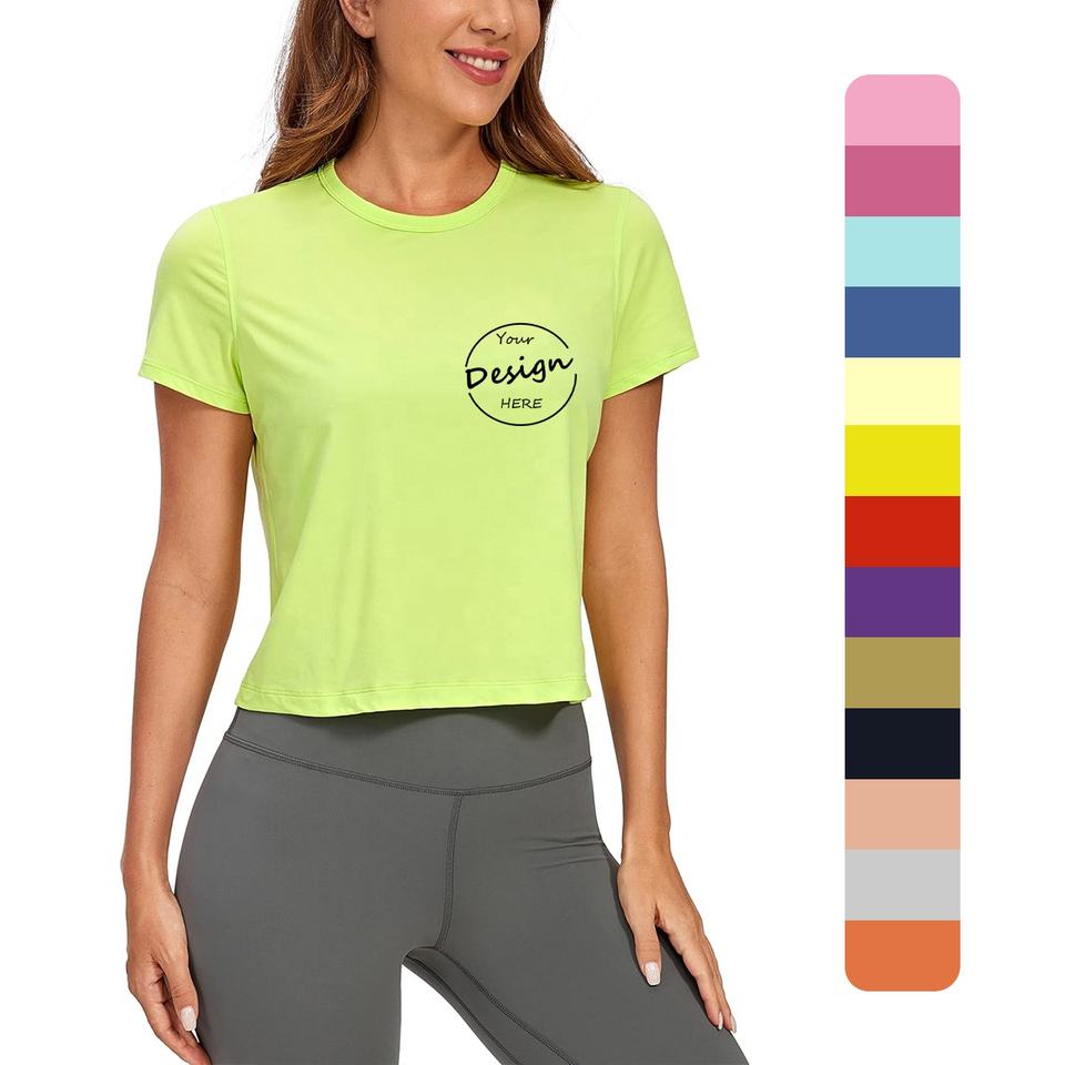 High Quality Custom Embroidery Women's 95 Combed Cotton 5 Spandex Stretchy Loose Solid Color Crop Top Gym Tshirt Women