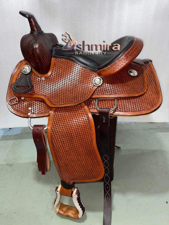 ชุดหมุดอานม้าแบบอังกฤษอุปกรณ์ขี่ม้าทำจากหนังบาร์เรลตะวันตก